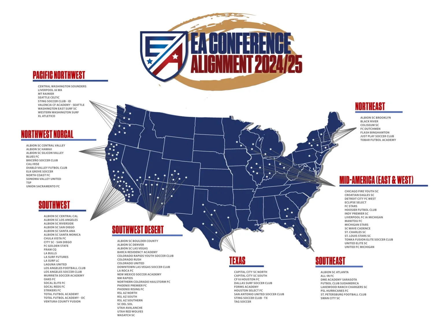 The Elite Academy League is composed of member clubs that represent Elite competitive clubs in their market and have shown to be of the standard and will benefit from being part of this platform. By unifying clubs from within the conferences, we have maintained the defining standards of previous elite platforms with a collective approach to making sure the platform sits atop the youth landscape.
